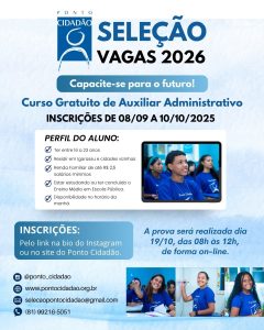 Inscrições para seleção Ponto Cidadão 2026 – CURSO GRATUITO